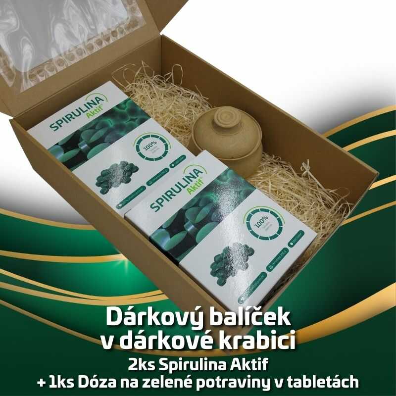 - Dárkový balíček 2ks Spirulina Aktif + 1ks Dóza na zelené potraviny v tabletách